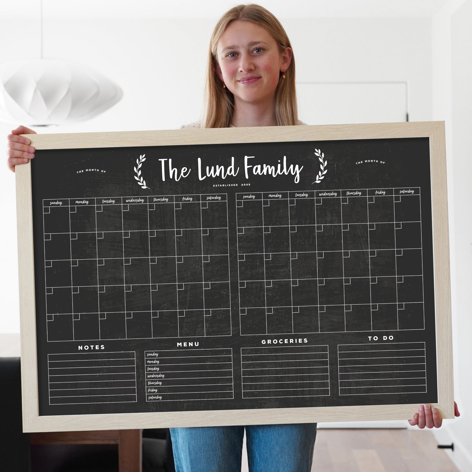 This beautiful chalkboard calendar is professionally designed, and is made to be used with chalk ink markers. It is not an actual chalkboard, but made to look like one. The surface is an amazing premium, non-glare acrylic. To erase, you simply wet a paper towel, wipe off ink, and dry with a dry paper towel. The ink erases completely, with no residue.