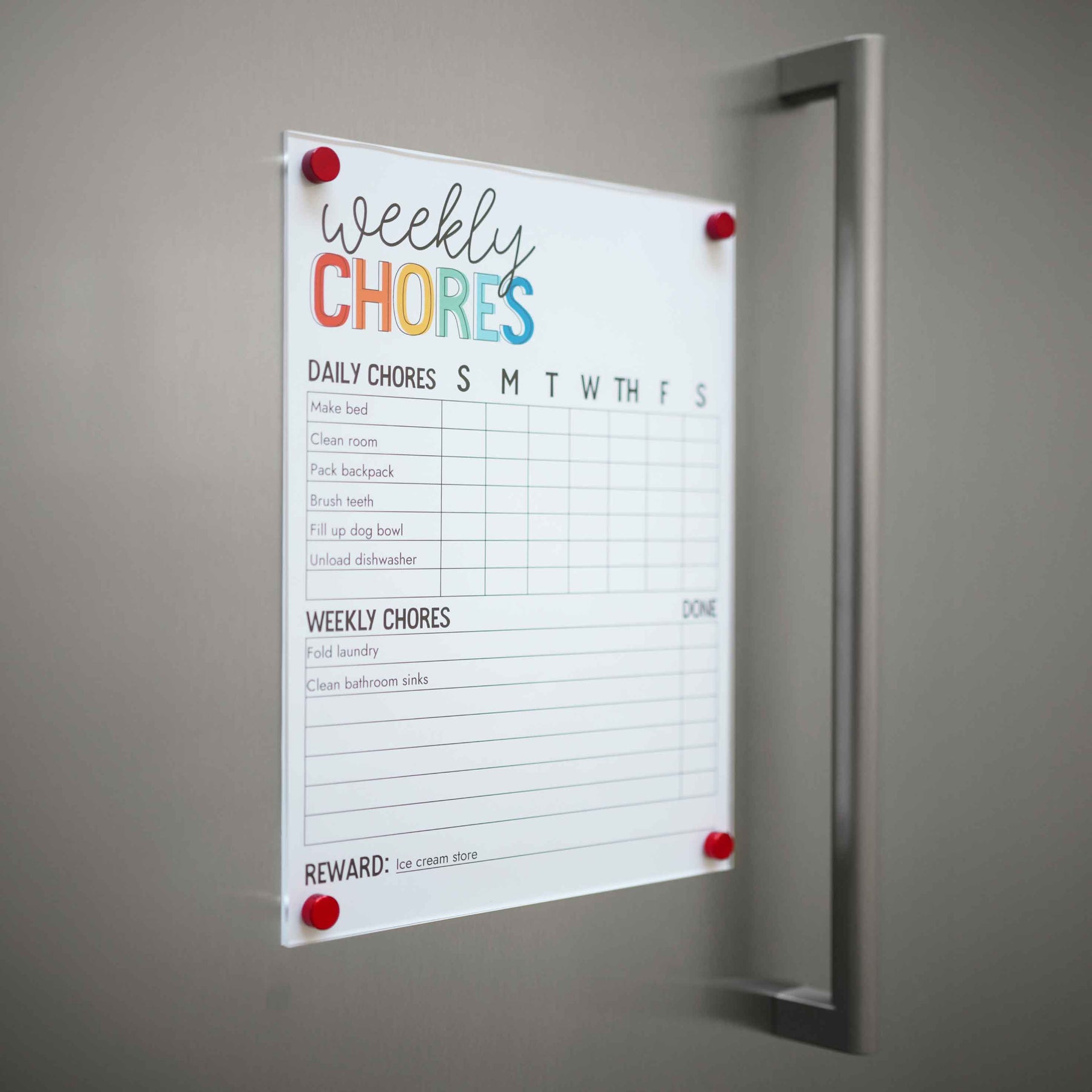 No more endlessly printing out chore charts! Clear Slate will last forever, and never get stained or look dingy.