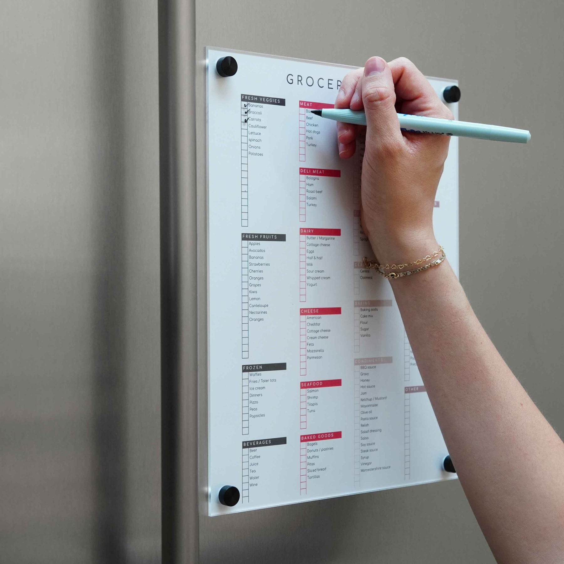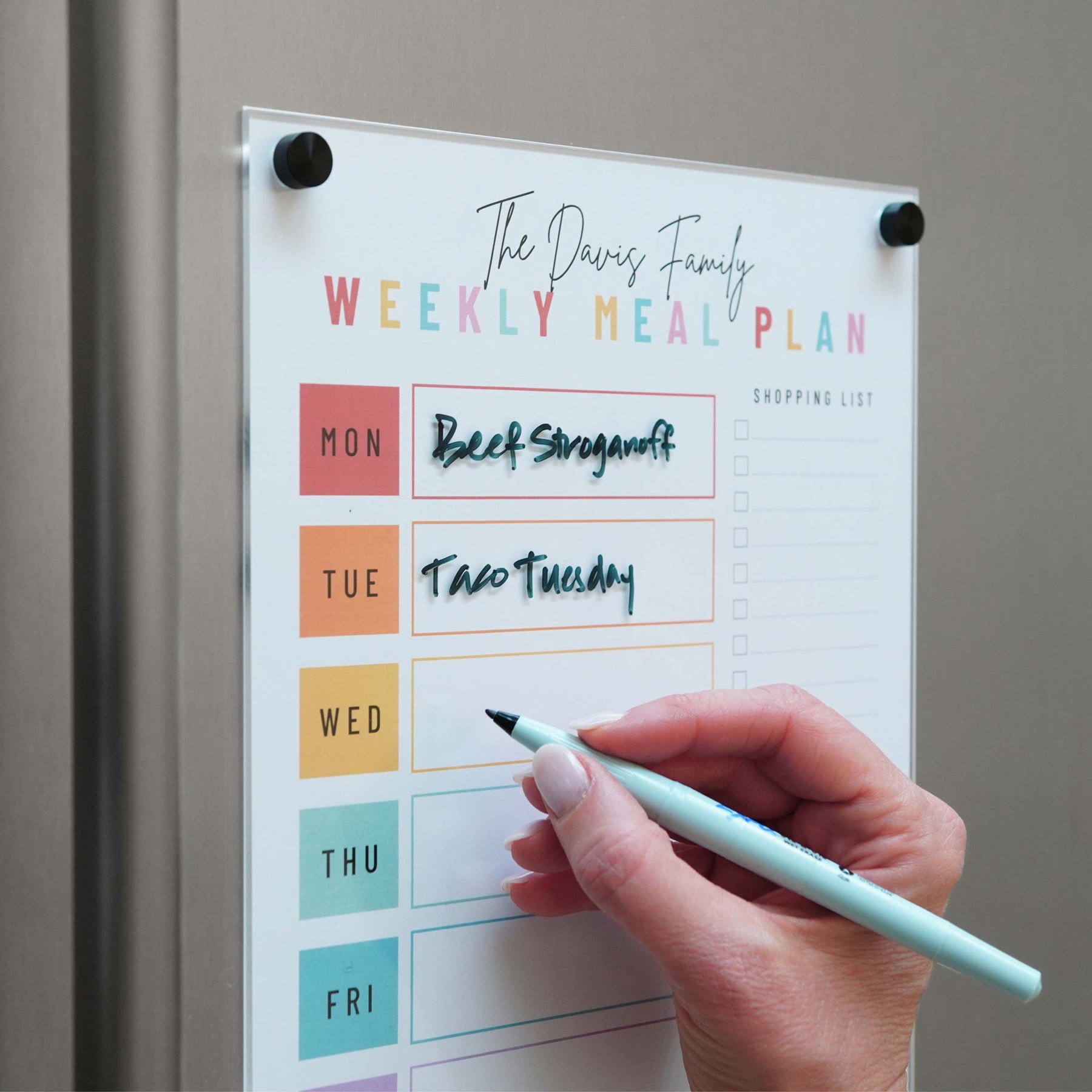 -Place Clear Slate clear cover over chart, and use included strong magnets to attach it to the fridge